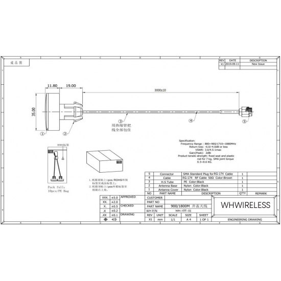 WH-IOT-01 Antena IoT para tapa de alcantarilla a por WHWireless Diseñada para entornos industriales y urbanos donde la conectividad fiable es crucial, esta antena opera a 880~960/1710/1880 MHz frecuencias y ofrece una Ganancia de 1 dB , lo que garantiza un rendimiento sólido y constante para las aplicaciones de IoT. Construido con un Resistente al agua IP67 clasificación Es altamente resistente al polvo, al agua y a las condiciones climáticas adversas, lo que la hace ideal para uso en exteriores. La antena puede funcionar en un amplio rango de temperaturas. De -40 °C a +85 °C , lo que garantiza su funcionalidad en entornos extremos. Ideal para infraestructuras de ciudades inteligentes, seguimiento de vehículos y monitorización industrial, el WH-IOT-01 ofrece soluciones versátiles para entornos urbanos. redes IoT . WHWireless es conocida por su alta calidad comunicación Este producto, que forma parte de nuestro equipamiento, ejemplifica el compromiso de la marca con soluciones IoT fiables y duraderas.